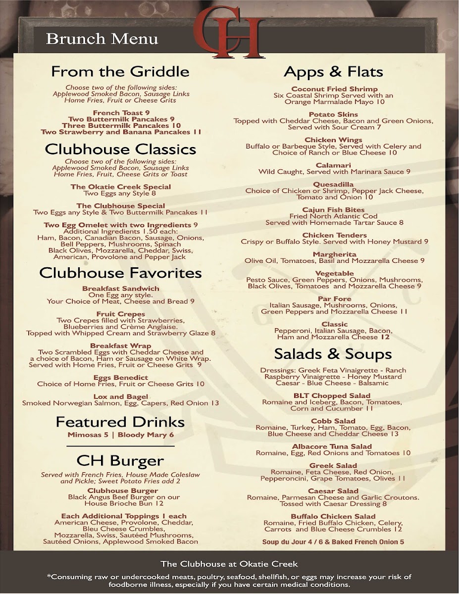 Whether unwinding with a mimosa or indulging in the Buffalo Chicken Salad, The Clubhouse at Okatie Creek promises a satisfying dining experience that keeps you coming back for more.